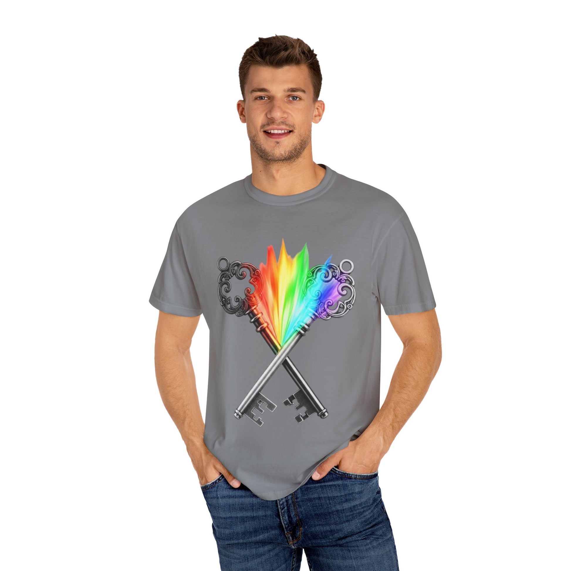 This T-shirt design is perfect for the curious-minded, brilliant communicators, and multifaceted souls. It embodies the power of the Gemini Twins, showcasing the union of your two halves in a vibrant, rainbow flame. A symbol of connection, duality, and expression, this design celebrates Pride and liberation, empowering you to speak your truth and shine your unique light. Ideal for those who resonate with the Gemini zodiac sign and those who embrace their authentic selves.